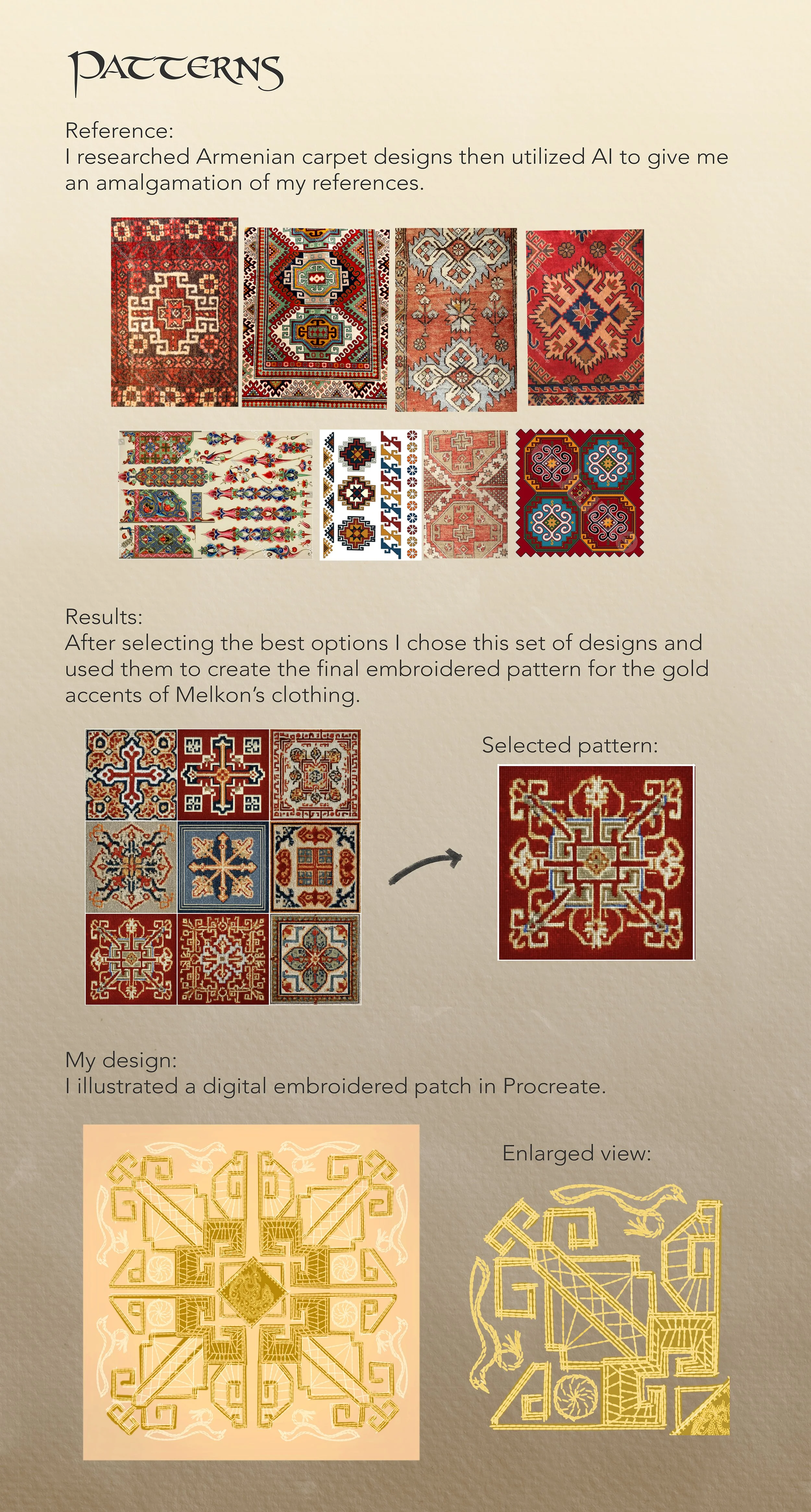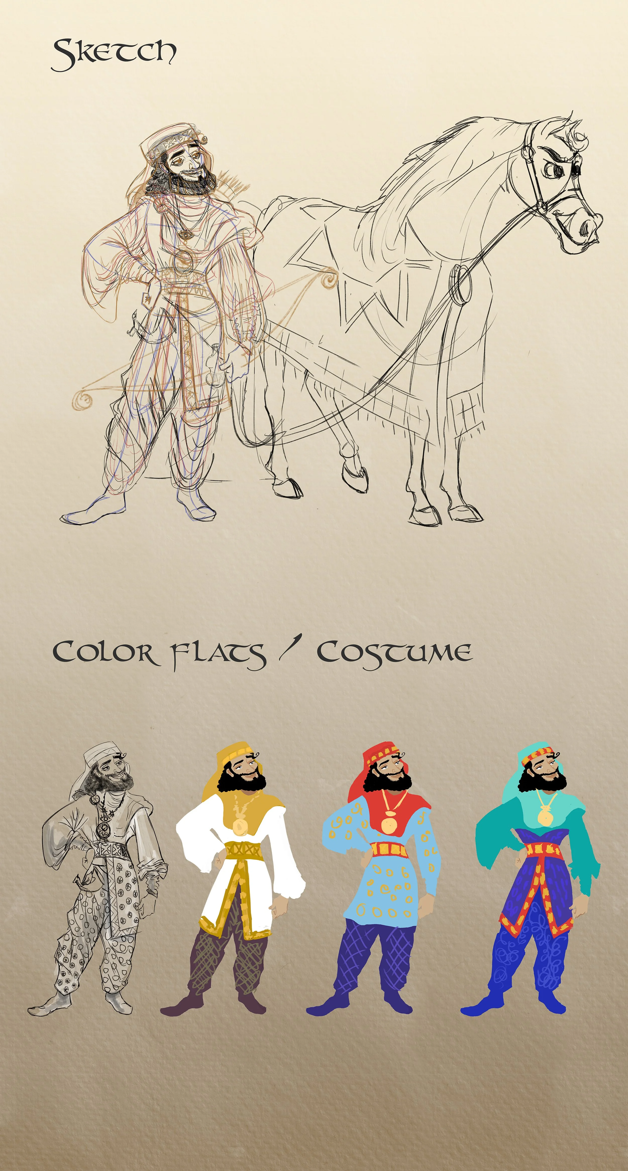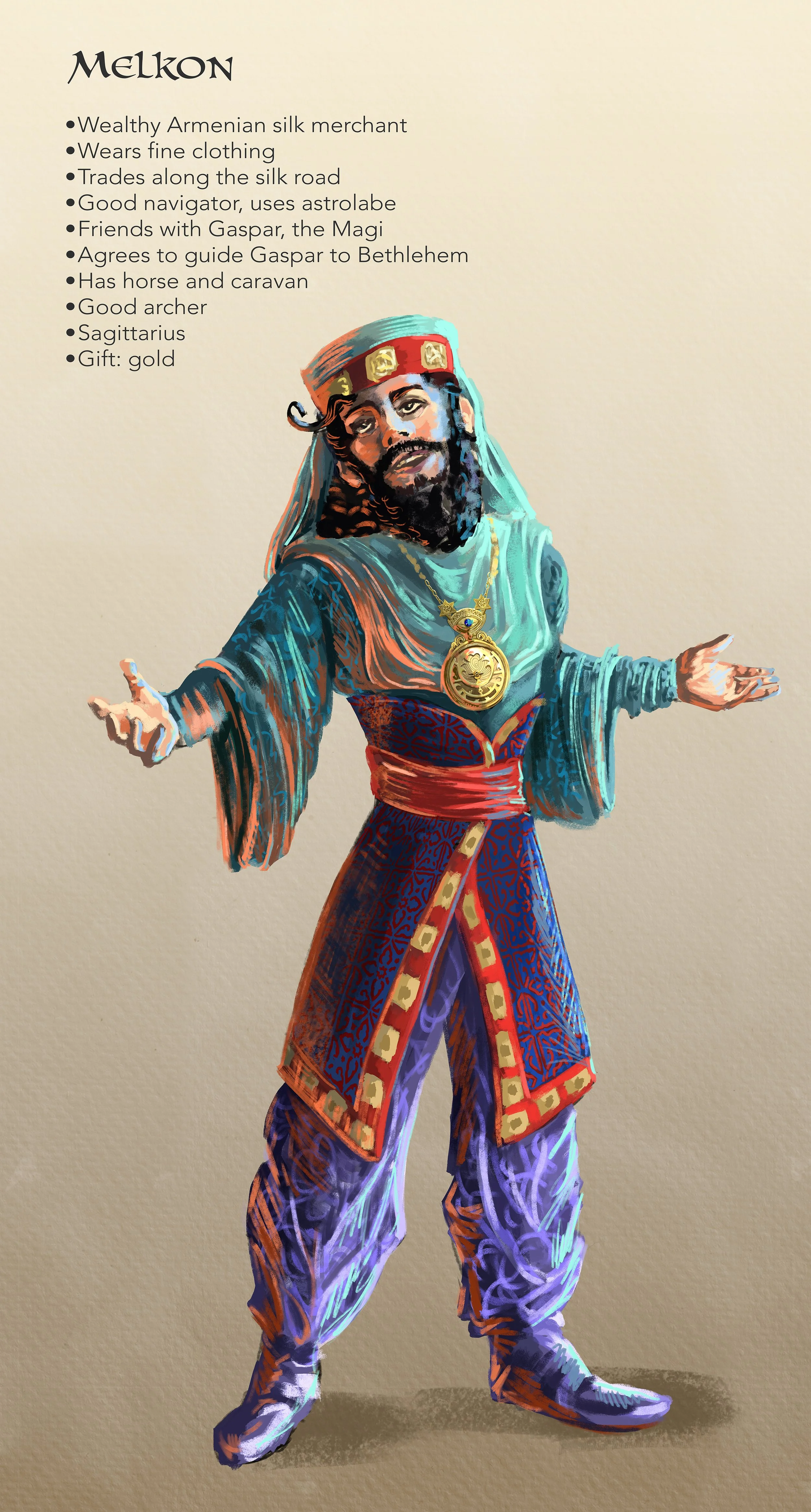 The number of wise men or “Magi” along with their origins/ethnicities is unknown. Uncovering an Armenian connection to this story got me thinking, what if they stop in Armenia because one of them is Armenian? The Magi was part of the Parthian Empire’s (Persia) royal court. They would inform the king on divine matters. I decided that Gaspar, being the oldest/wisest, would be a member of the Magi. But he would need a travel companion, someone who could help navigate him on his journey to Bethlehem. Melchior or Melkon (Western Armenian) would be that second “wise man.” He is an Armenian merchant. He would have extensive knowledge of how to navigate trade routes. Armenia, after all, was a key stop on the Silk Road in this time. Lastly, Balthasar would be our third “wise man,” a Cataphract warrior. Gaspar and Melkon would need a body guard to ensure the gifts made it to Jesus.
